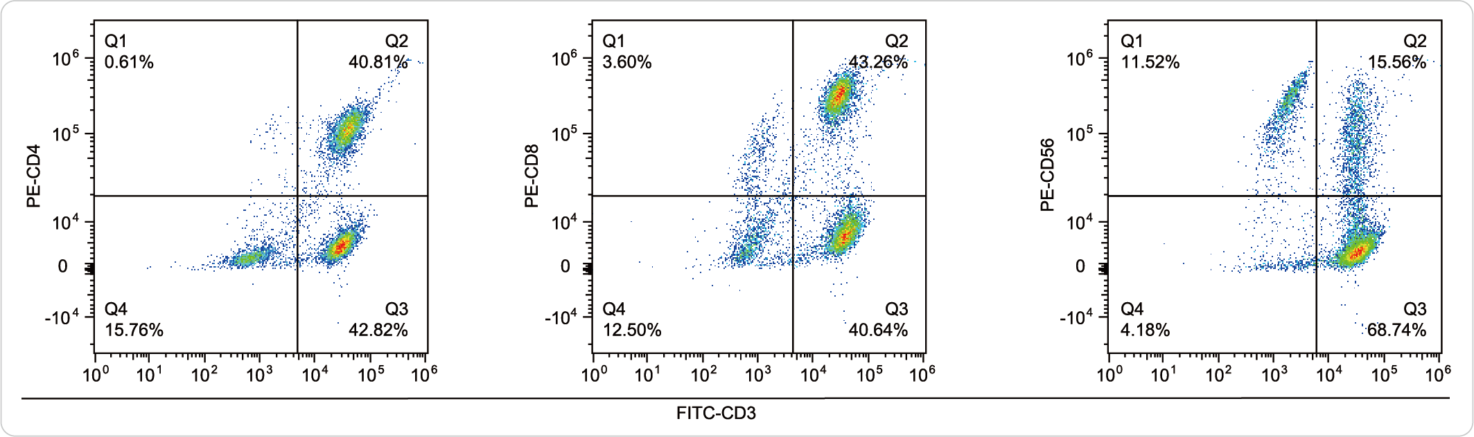 ● CD3+CD4+与CD3+CD8+比例接近1:1